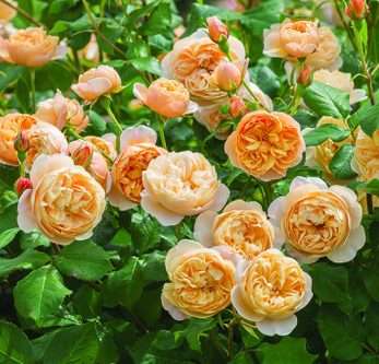 Peach coloured blooms in small clusters. Almost thornless. Fragrant. Low-Medium height.