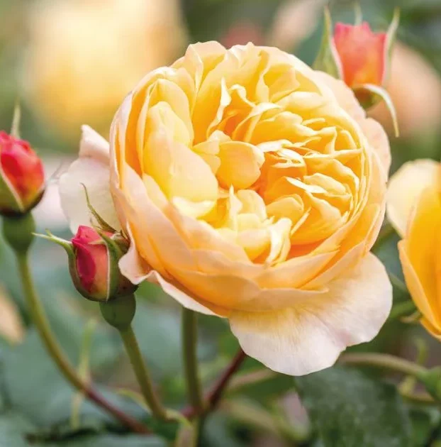 Peach coloured blooms in small clusters. Almost thornless. Fragrant. Repeat flowering.